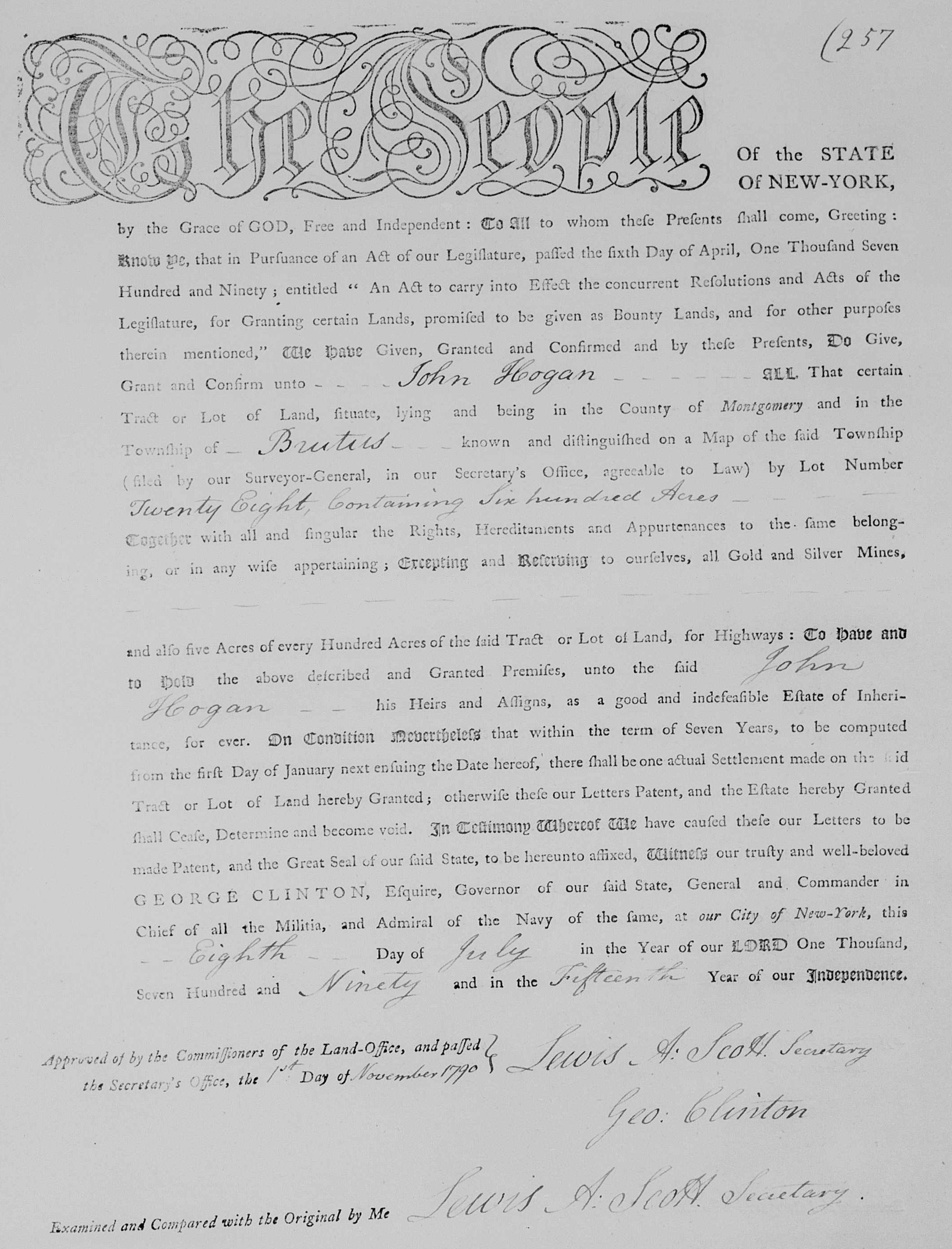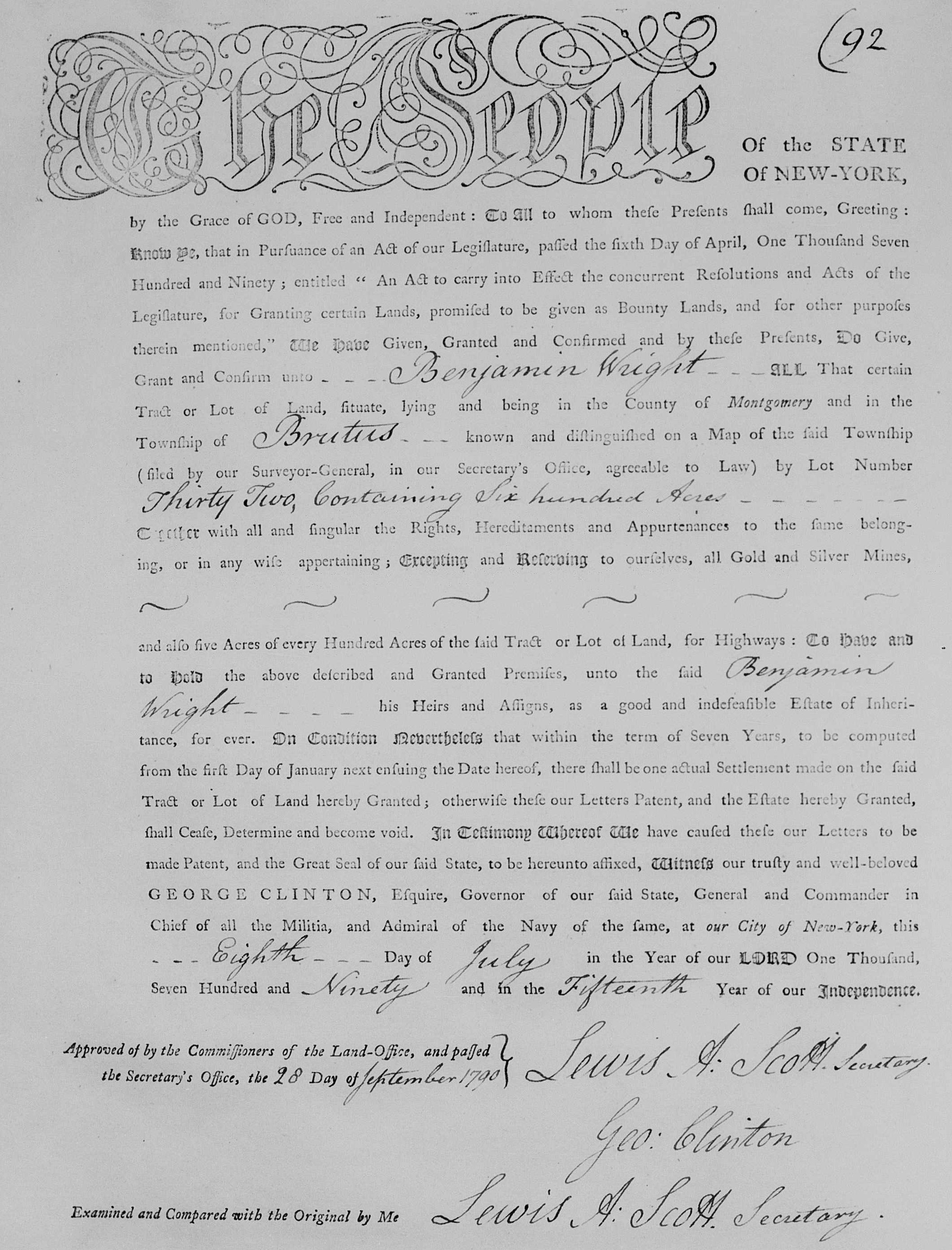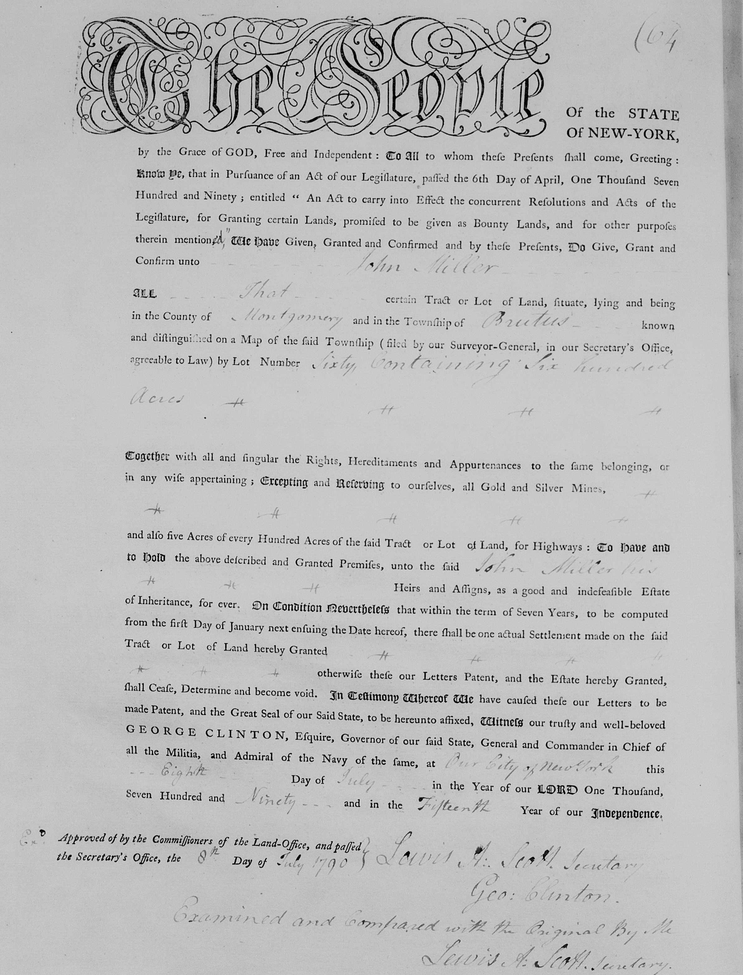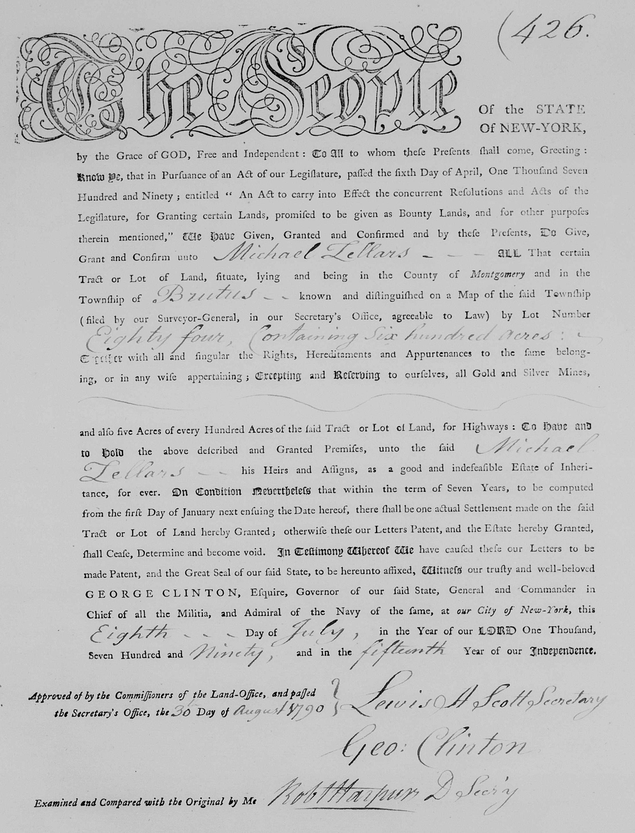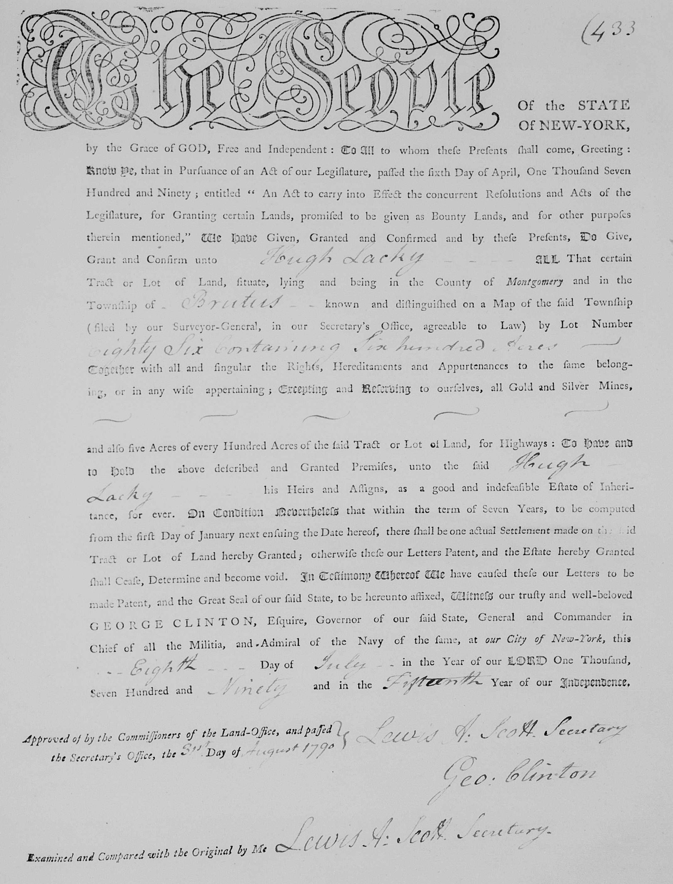 The circa 1790 map showing bounty land lots within Township #4 - BRUTUS, can be viewed HERE |