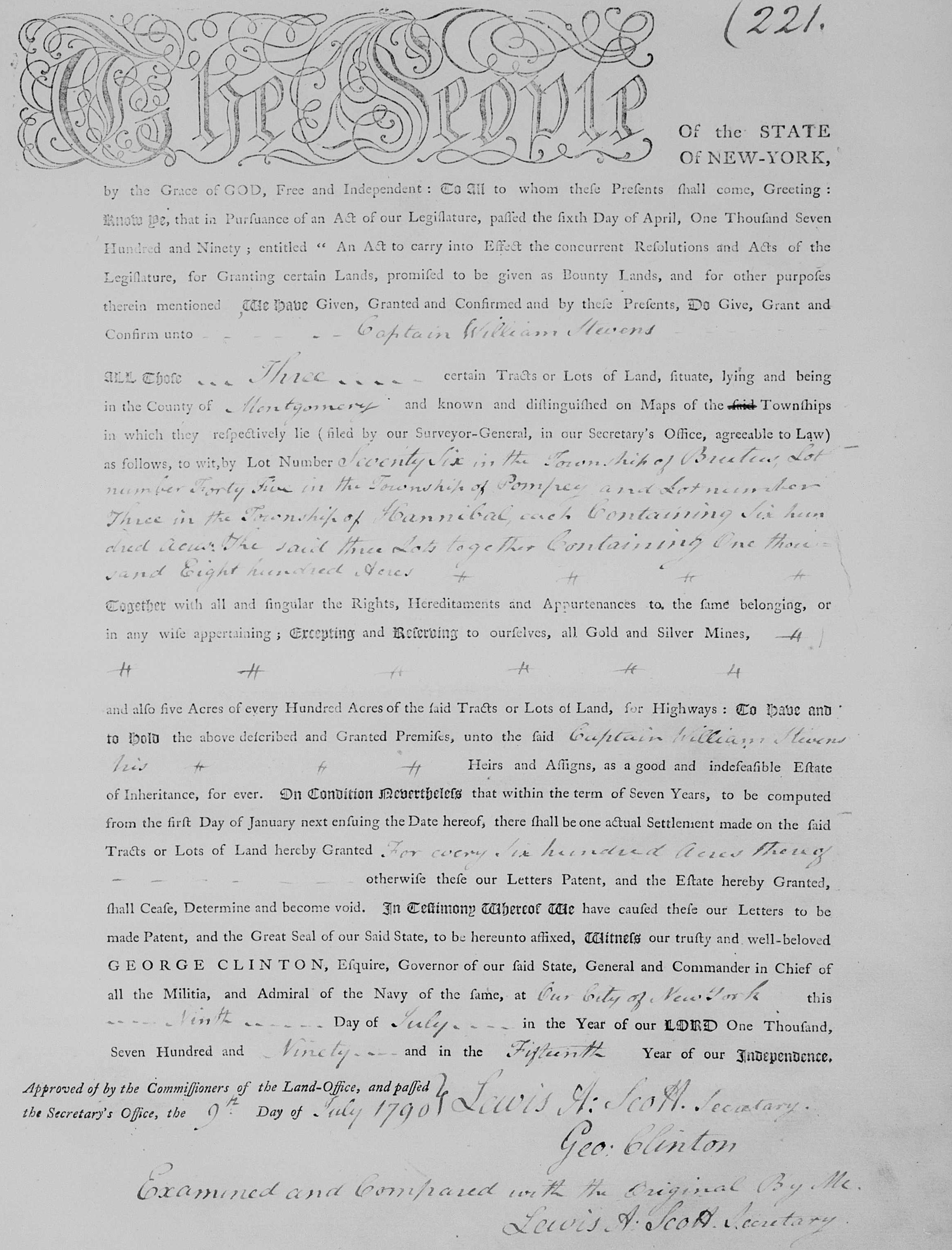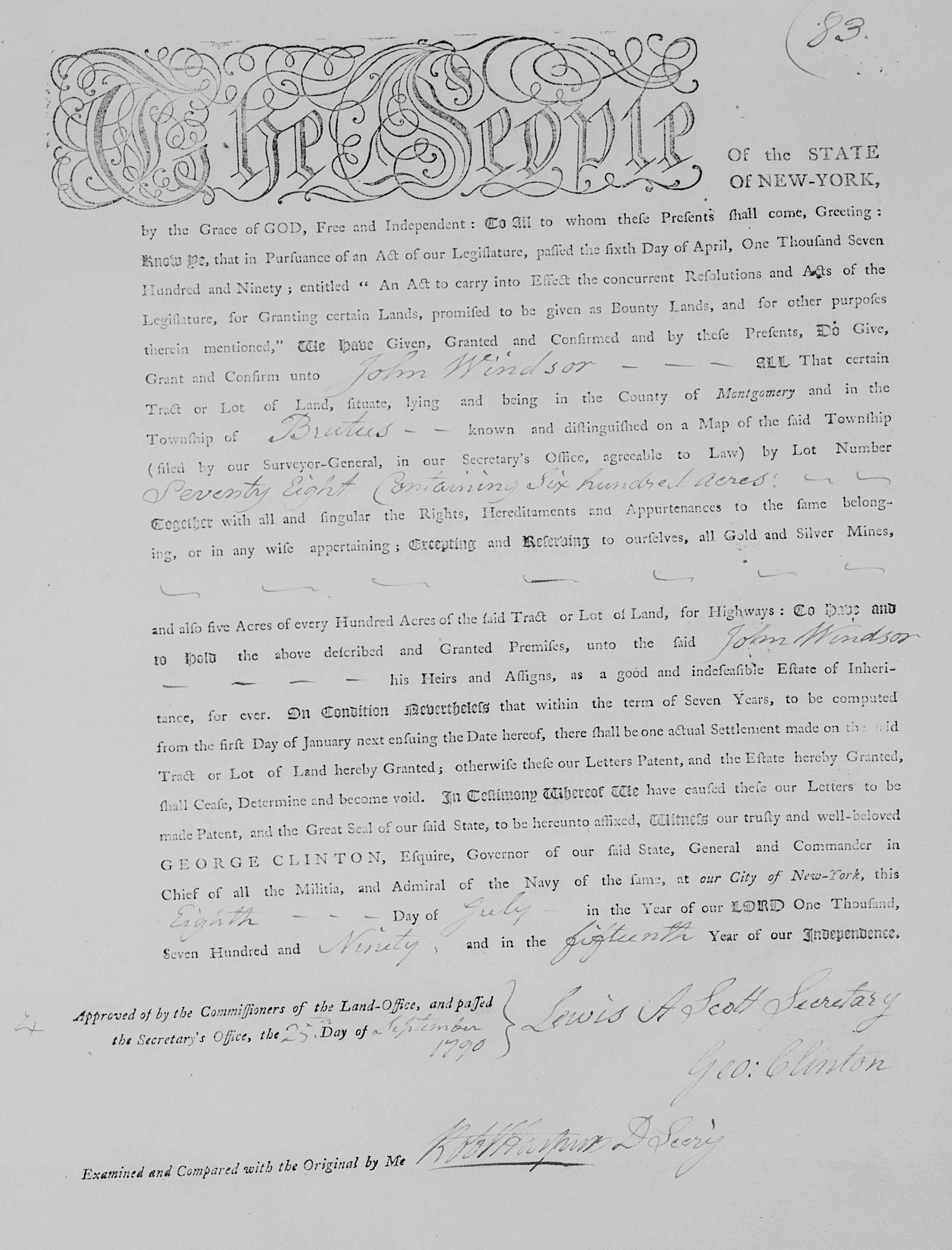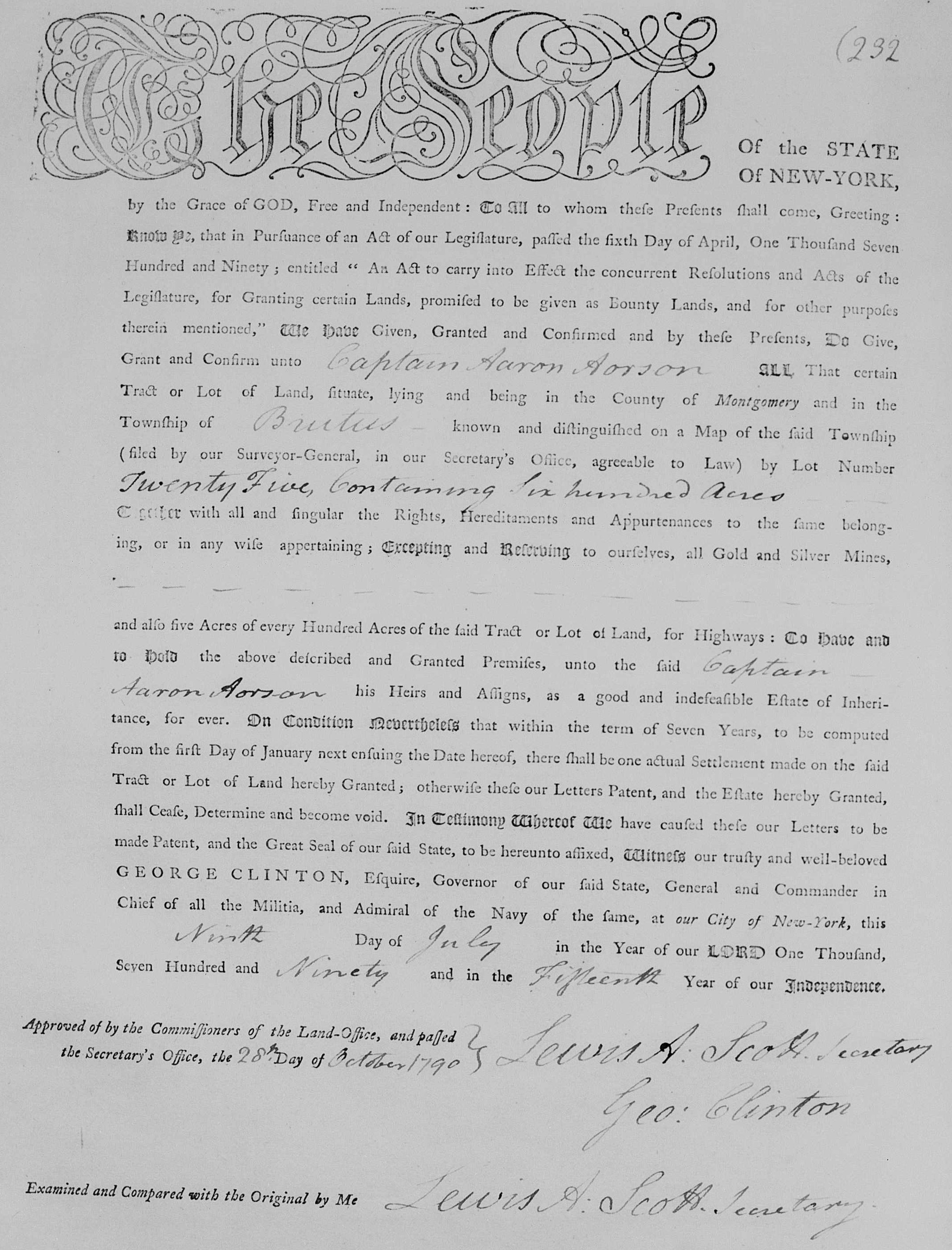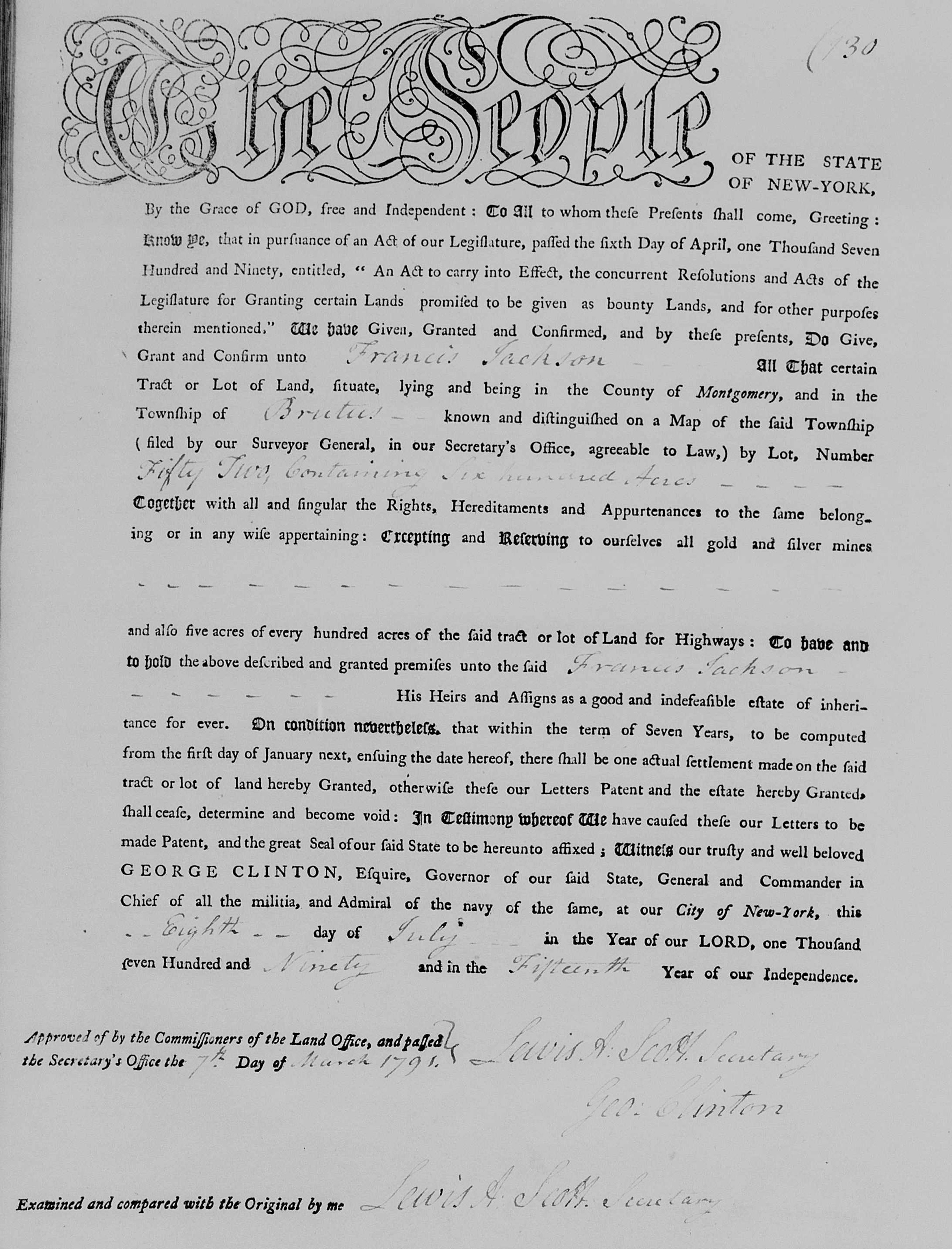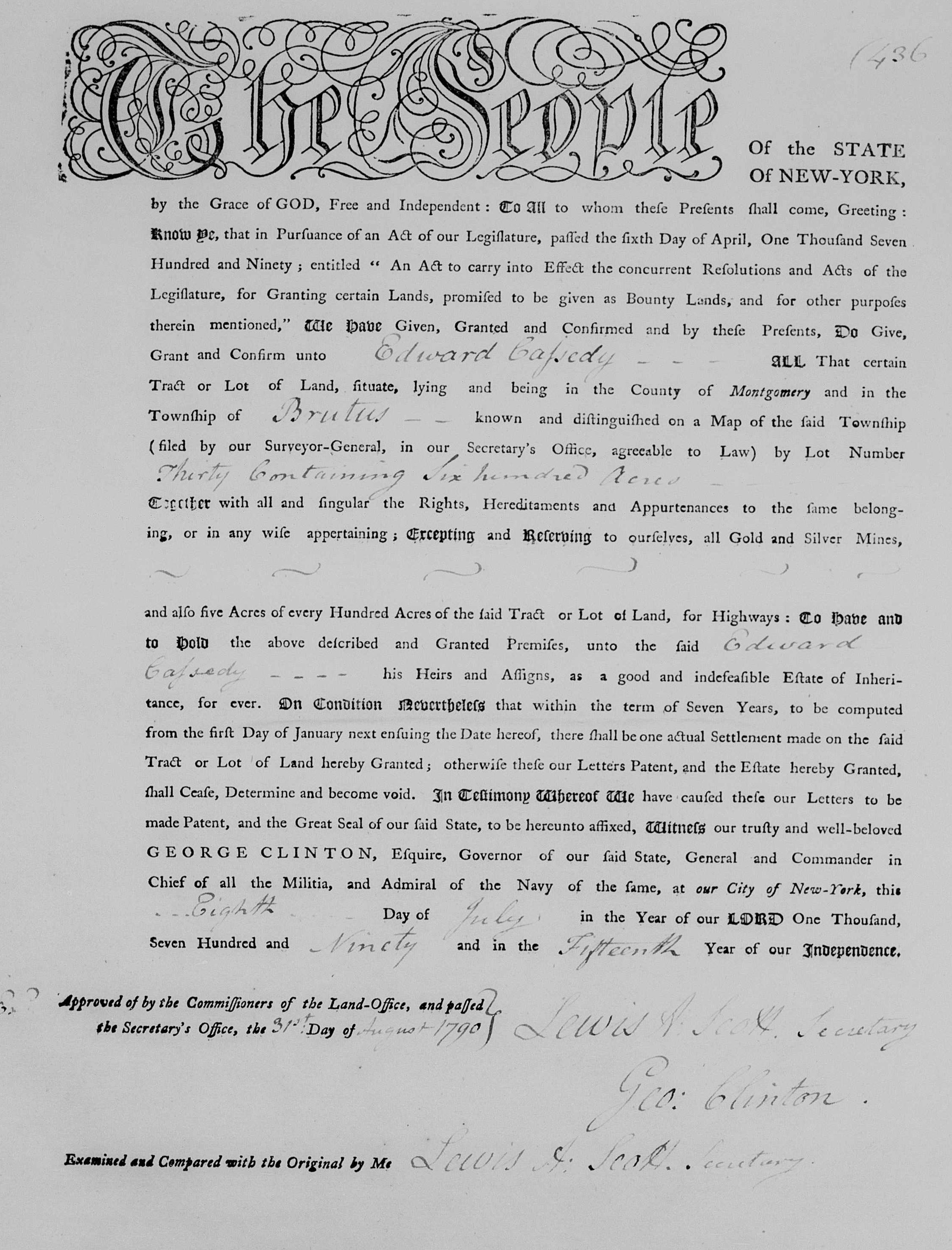 The circa 1790 map showing bounty land lots within Township #4 - BRUTUS, can be viewed HERE |
